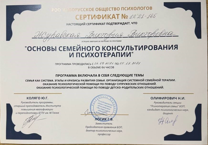 Работая более 15 лет в экономике, я осознала, что важнее всего у человека в жизни — это его Душа и Семья. Поэтому выбор пал на получение знаний в области психологии не случайно. Но не просто Психологии, а Психологии Семейных Отношений.