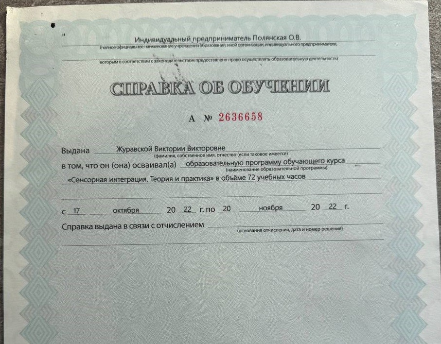Поэтому во время обучения в университете на психолога я с благодарностью покинула руководящую должность и начала работать в Центре инновационной психологии и развития с детьми с особенностями психофизического и психоречевого развития и на сегодняшний день я консультирую родителей по вопросам развития детей, опираясь на знания о нейропсихологии, провожу психологическую оценку и диагностику детей и подростков с различными поведенческими и эмоциональными проблемами, определяю готовность ребёнка к школе, оказываю индивидуальную, семейную и групповую консультацию детям и семьям, оказывая помощь родителям, воспитывающем ребёнка и изущим помощи в этом.
